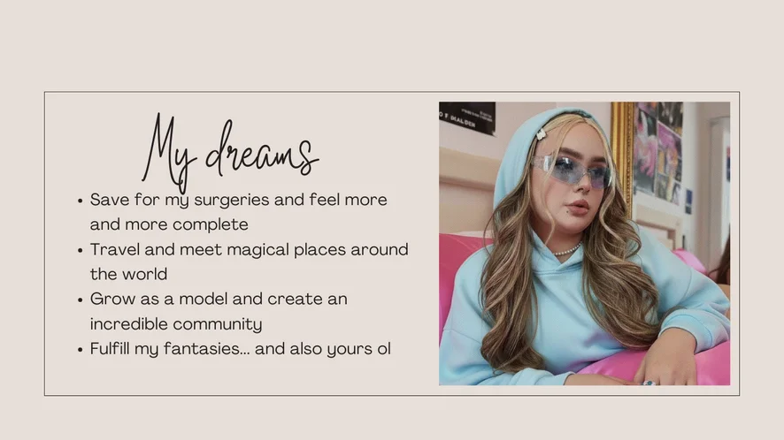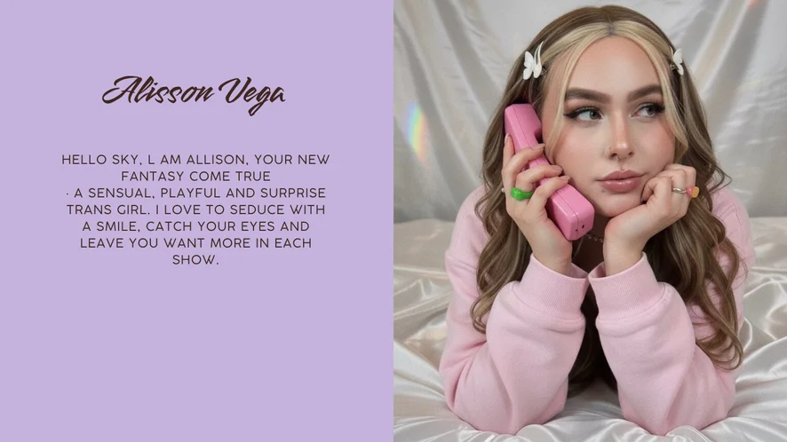 I am a trans girl who is sure of who she is, authentic and eager to connect with you 💖 I love to explore, play and create unique moments full of complicity and trust. Here you will find a mix of sensuality, fun and real energy that cannot be faked.